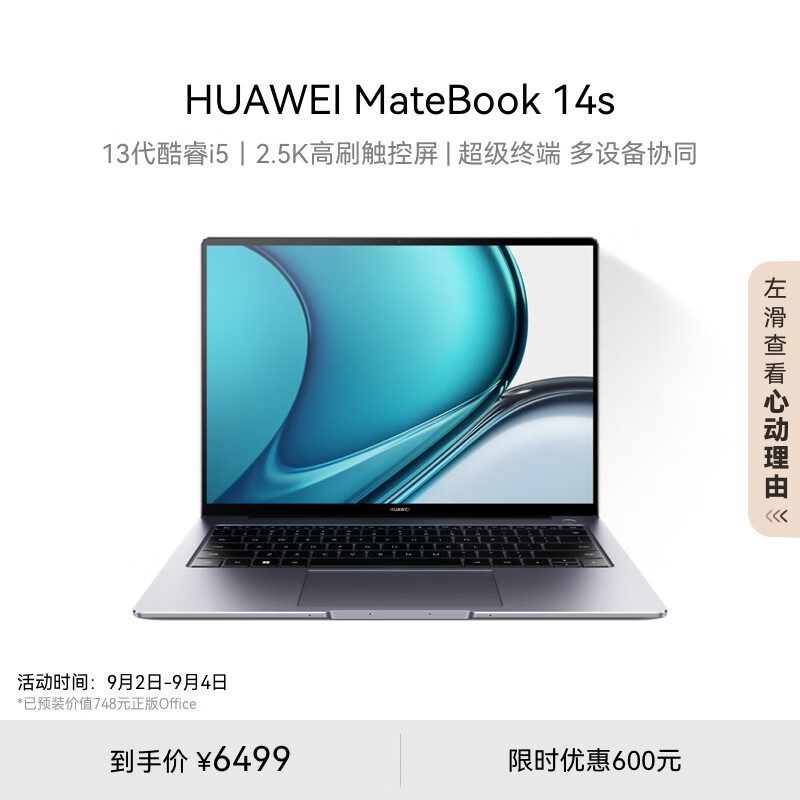 华为MateBook 14s 笔记本电脑 13代酷睿标压处理器/120Hz高刷触控屏/轻薄办公本 i5 32G 1T 深空灰价格:6499.00元!