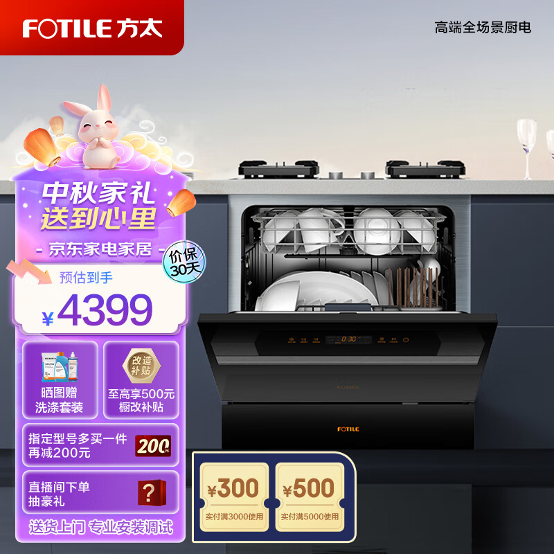 方太(FOTILE)洗碗机嵌入式家用 高能气泡洗 12套大容量 灶下洗碗机 一级水效 30min超快洗02-NJ01价格:4399.00元!