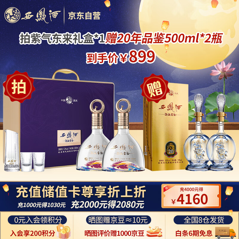 西凤酒 紫气东来白酒礼盒 凤香型52度年份收藏500ml*2瓶 中秋送礼价格:899.00元!