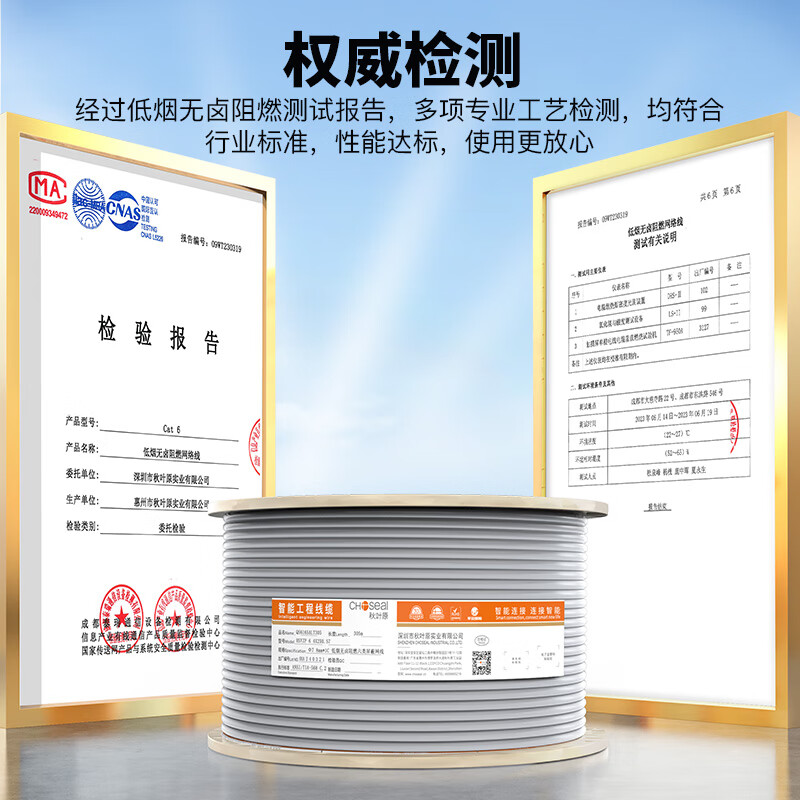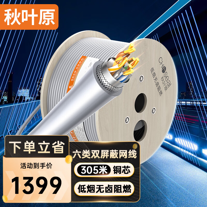 秋叶原(CHOSEAL)六类双屏蔽低烟无卤阻燃网线 CAT6类千兆0.57纯铜芯 工程布线环保无毒 305米灰色 QS6165ALT305价格:1270.00元!