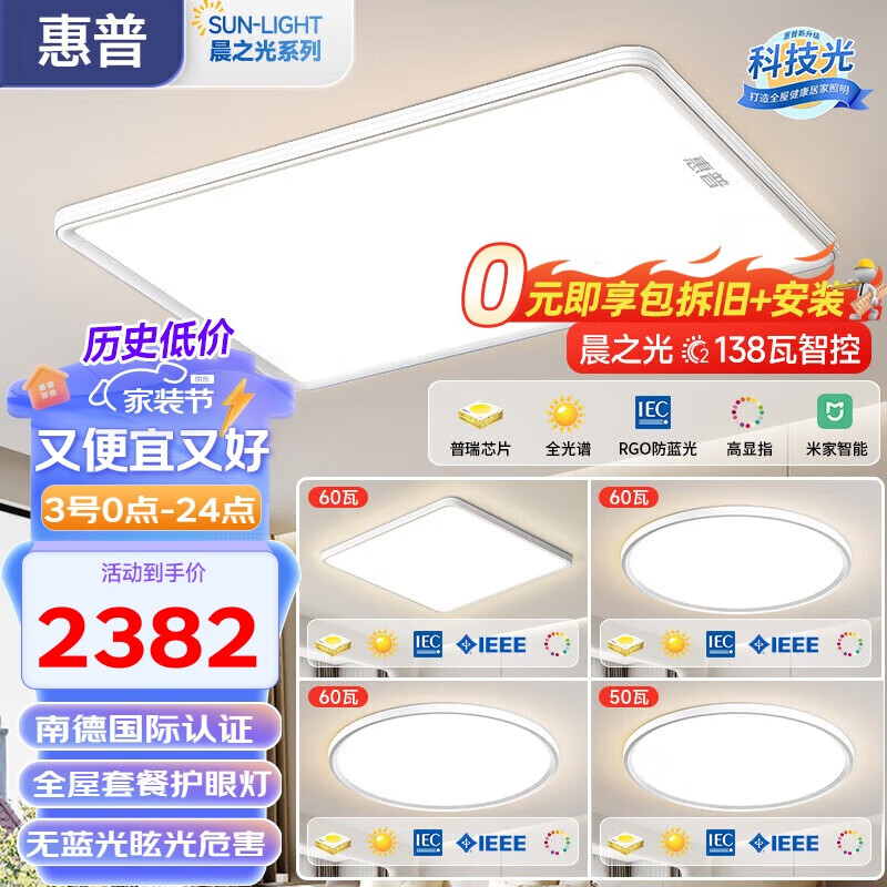 惠普全光谱护眼吸顶客厅灯米家现代简约灯具灯饰中山灯具全屋套餐M价格:3970.00元!