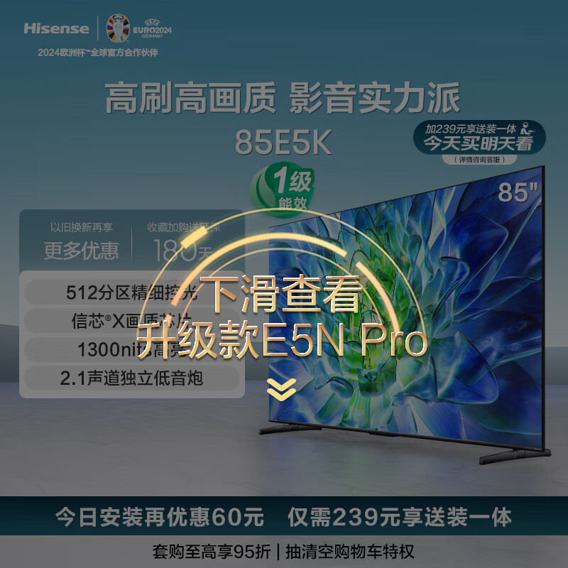 海信电视85E5K 85英寸 512分区 信芯X独立画质芯片 144Hz高刷高画质 液晶智慧屏 大屏巨幕平板以旧换新价格:5599.00元!