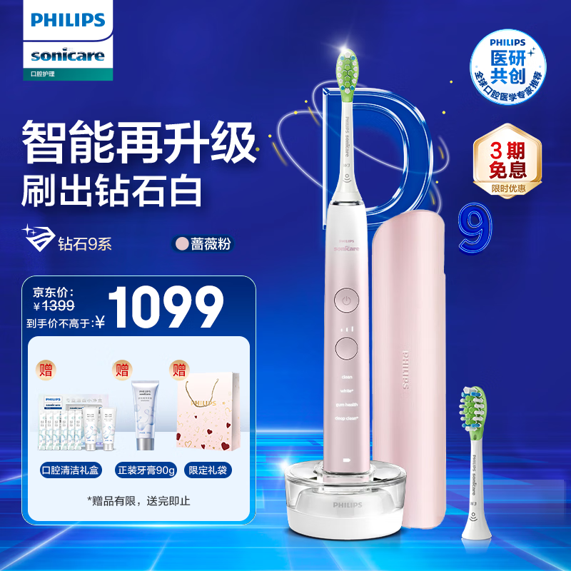 飞利浦(PHILIPS)电动牙刷成人 情侣款送男友/女友礼物 中秋节教师节 声波震动 1支刷头 HX9911钻石9系 樱花粉价格:1259.00元!