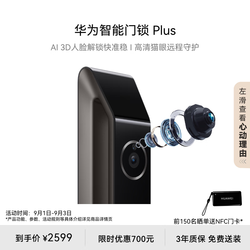 华为智能门锁 Plus 【Mate 60平安好搭档】 AI 3D人脸解锁快准稳 AI指纹锁 电子锁 免费送装拆旧价格:2599.00元!