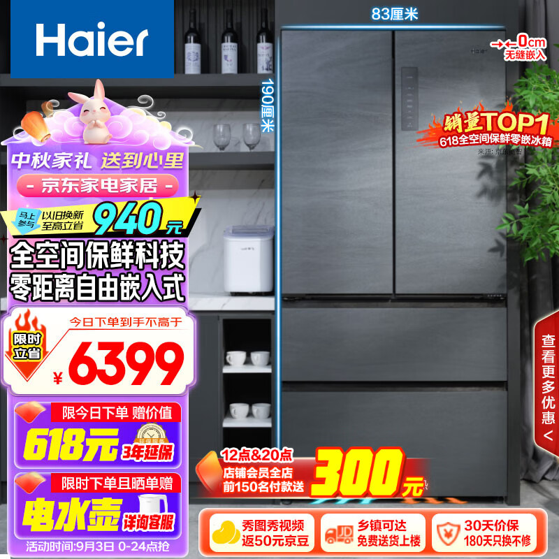 海尔(Haier)501L全空间保鲜零距离自由嵌入法式四开门多门电冰箱家用一级能效超薄零嵌入式BCD-501WGHFD14S8U1价格:6899.00元!