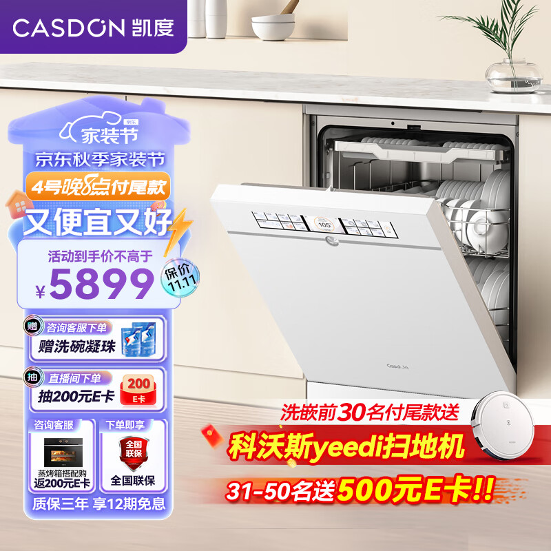 凯度(CASDON)嵌入式 全自动家用烘干独立式 一级水效 18套大容量洗碗机 KD4DCQR-18Z5白色价格:5899.00元!