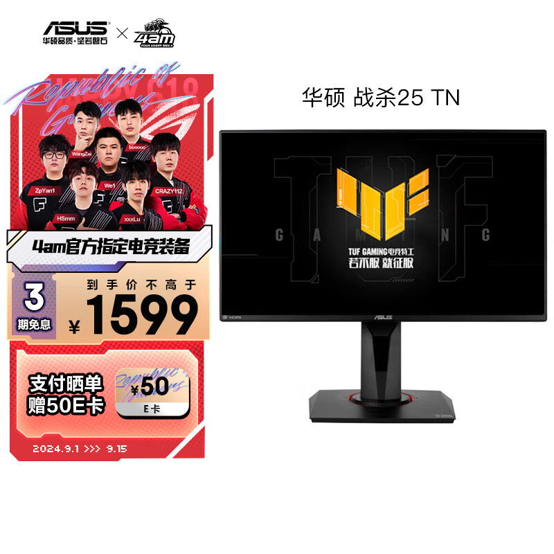 华硕VG258QM战杀25 24.5英寸显示器电竞显示器240Hz显示器超频280Hz HDR400 0.5ms灰阶响应价格:1599.00元!
