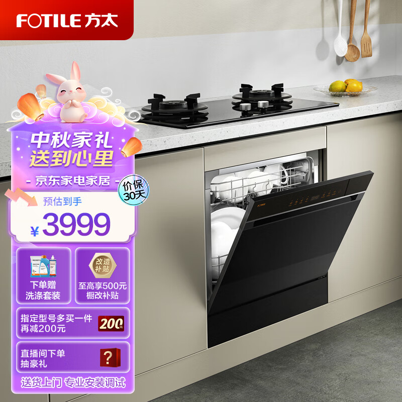 方太(FOTILE)洗碗机嵌入式家用 高能气泡洗 12套大容量 灶下洗碗机 一级水效 30min超快洗 NJ03S价格:3599.00元!