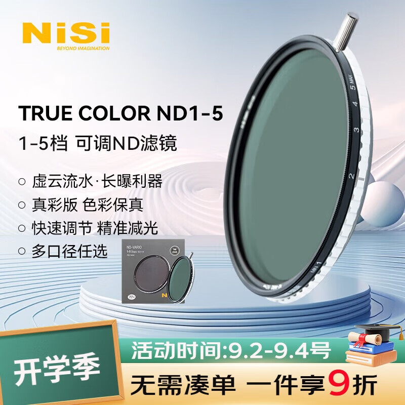 耐司(NiSi)可调nd滤镜 True Color VND1-5档46mm可变nd减光镜真色彩 色彩保真可调ND镜 单反微单相机视频人像价格:498.00元!
