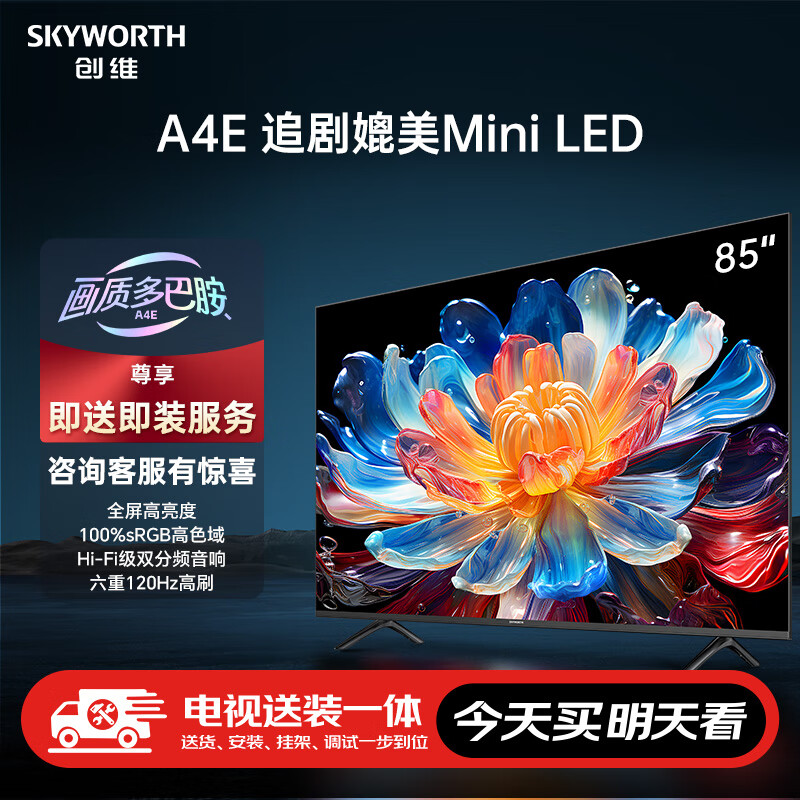 创维电视85A4E【送装一体版本】护眼电视机120Hz高刷媲美mini led 双分频音响4K超薄巨幕大屏游戏电视 价格:5062.00元!