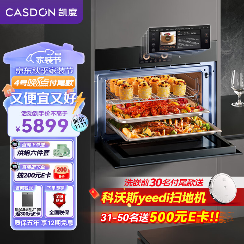 凯度(CASDON)60L彩屏蒸烤箱一体机嵌入式 蒸箱 烤箱 双热风 家用蒸烤炸炖四合一体SR6028FE22-ZDPro二代价格:5899.00元!