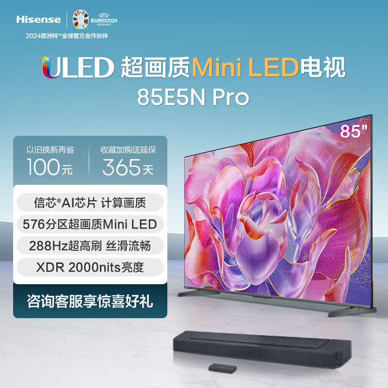 海信ULED超画质电视85E5N-PRO+Bar300沉浸追剧套装 85英寸 Mini LED 液晶平板电视机价格:9098.00元!