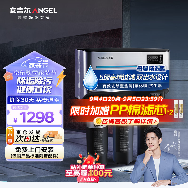 安吉尔【肖战代言】净水器家用直饮厨下式反渗透纯水机双出水机过滤器智能净水机J1205-ROB8C银色价格:1298.00元!