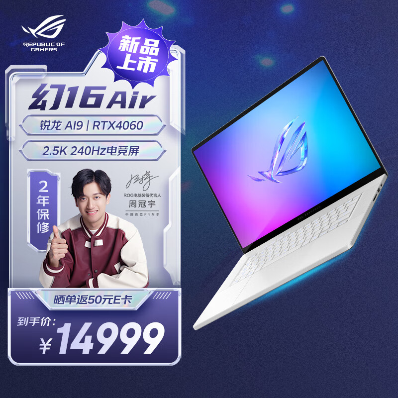 ROG幻16 Air 锐龙 AI版 16英寸游戏本笔记本电脑(锐龙 AI 9 HX 370 32G 1T RTX4060)白 畅玩黑悟空价格:14999.00元!