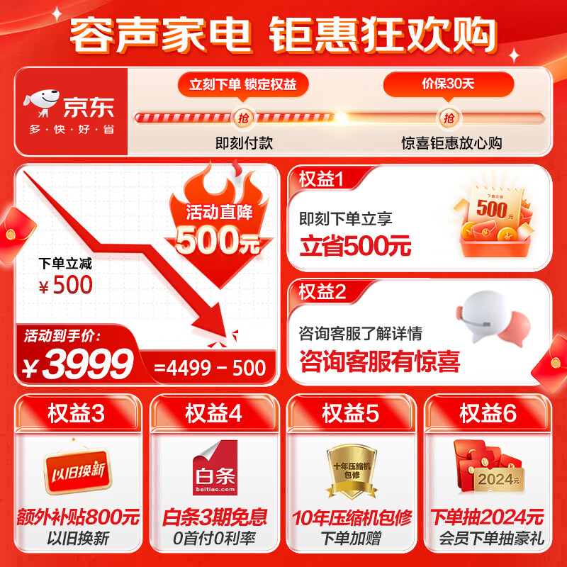4、冰箱乘着搞活动买的,价格合适,师傅直接送上门方便。目前没有入住,看着还挺好的。