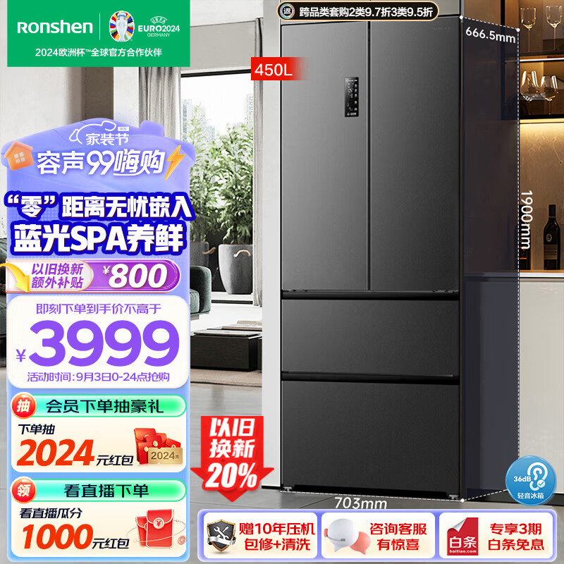 容声(Ronshen)450升法式多门对开四开门超薄零嵌入式电冰箱家用一级能效变频风冷无霜BCD-450WD12MPLA以旧换新价格:4499.00元!