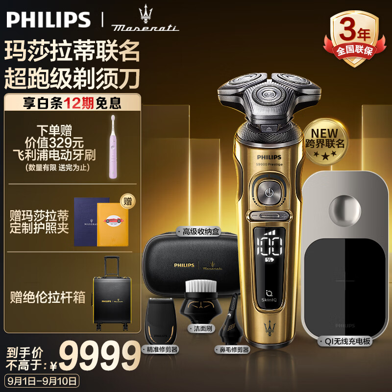 飞利浦(PHILIPS)电动剃须刀奢享蜂巢9系玛莎联名礼盒 微提切科技刮胡刀 送男友【跨界豪车联名】生日礼物价格:9999.00元!