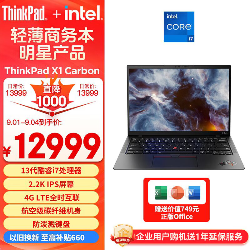 ThinkPad X1 Carbon 英特尔Evo 联想14英寸轻薄笔记本电脑 13代酷睿i7-1360P 32G 512G 4G 2.2K(05CD)价格:12999.00元!