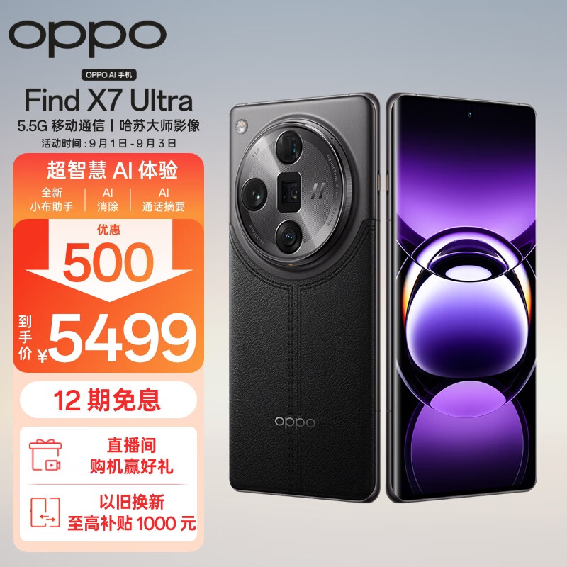 OPPO Find X7 Ultra 12GB+256GB 松影墨韵 1英寸双潜望四主摄 哈苏影像 第三代骁龙8 5.5G 拍照 AI手机价格:5499.00元!