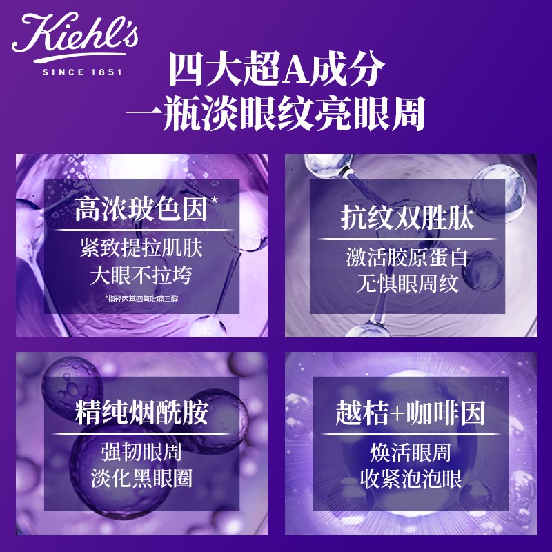 科颜氏(Kiehl's)紫玻A眼霜28ml 淡化黑眼圈抗皱 护肤品礼盒 生日礼物女新年价格:740.00元!