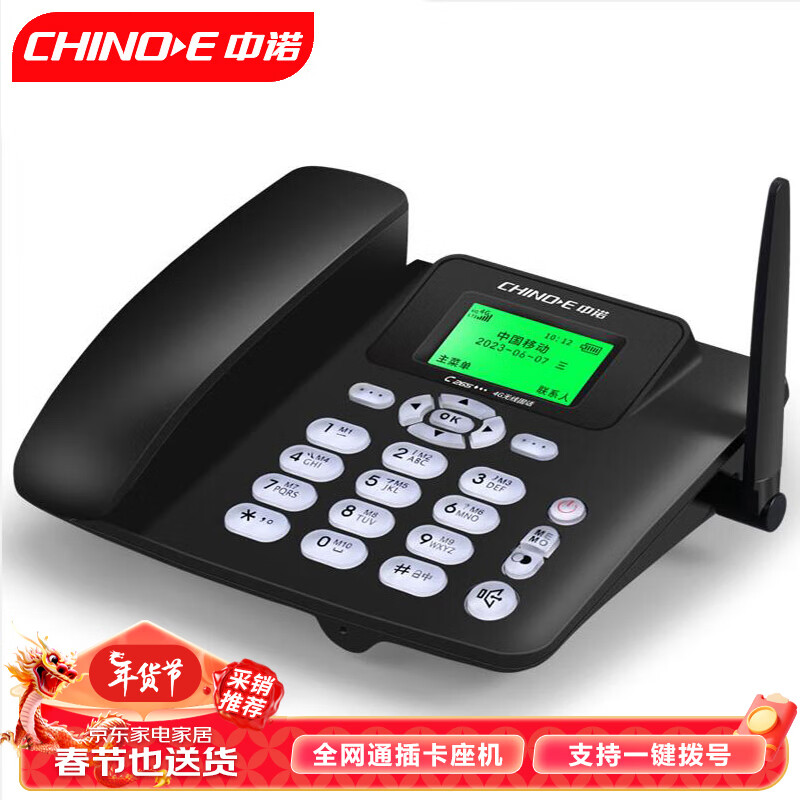 中诺通4G5G无线插卡固话办公家用固定电话座机电信移动联通广电4G网高清免提黑名单C265睿智版黑色价格:168.00元!