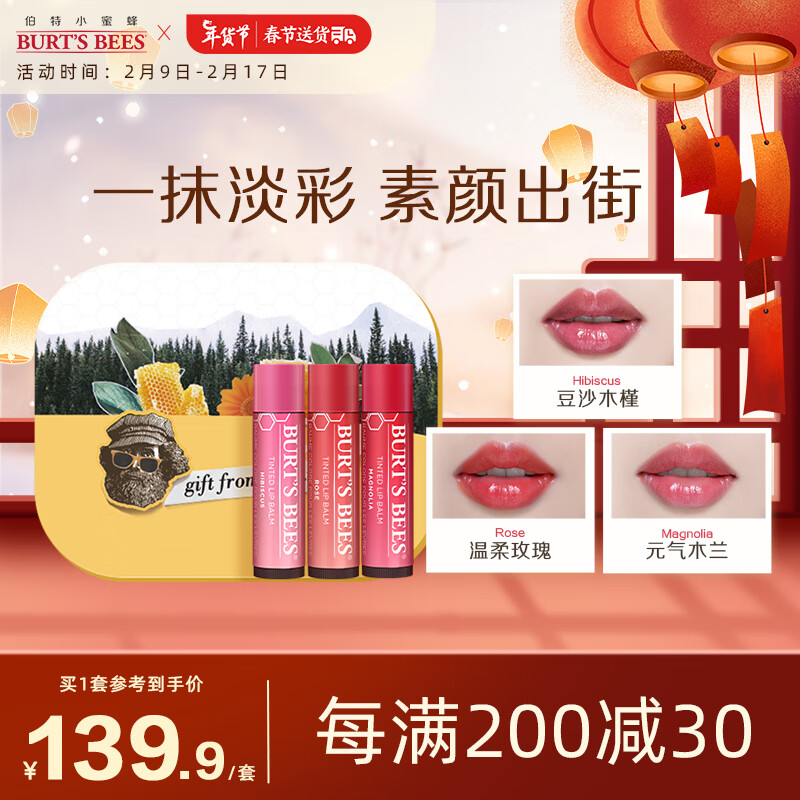 伯特小蜜蜂淡彩滋润润唇膏*3支豆沙+玫瑰+木兰 送女友新年礼物情人节礼物价格:269.00元!