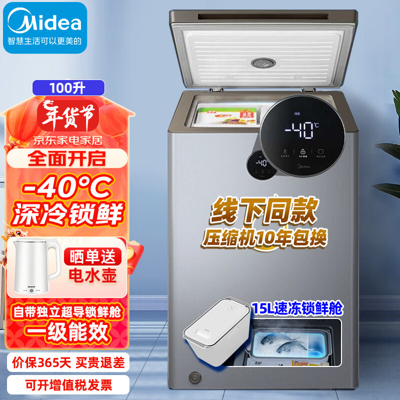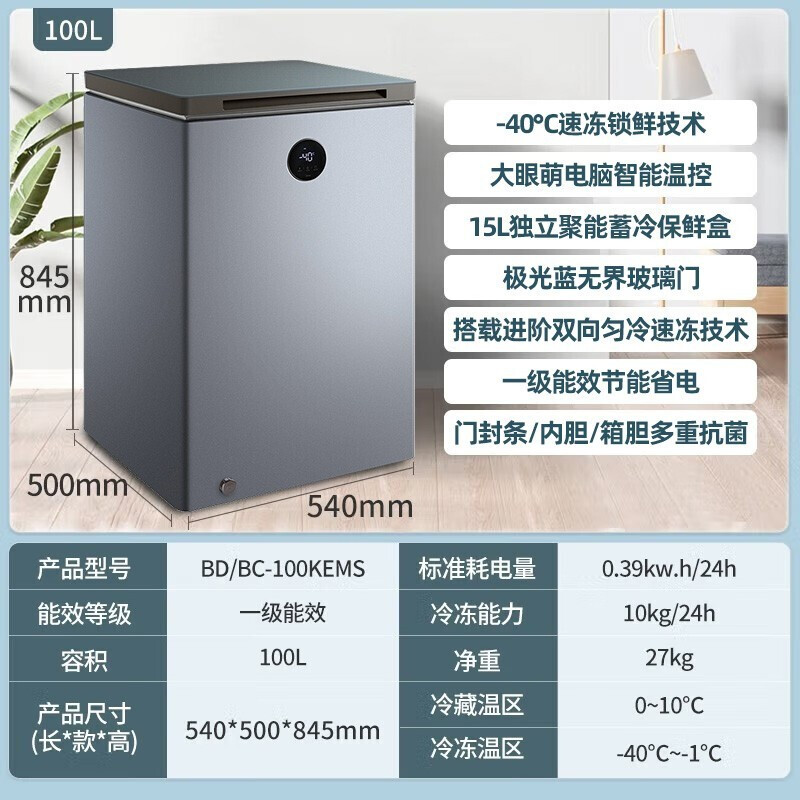 美的(Midea)冷柜家用冰柜 零下40度超低温冷藏冷冻迷你变温净味冷柜 一级能效小冰箱BD/BC-100KEMS价格:1399.00元!