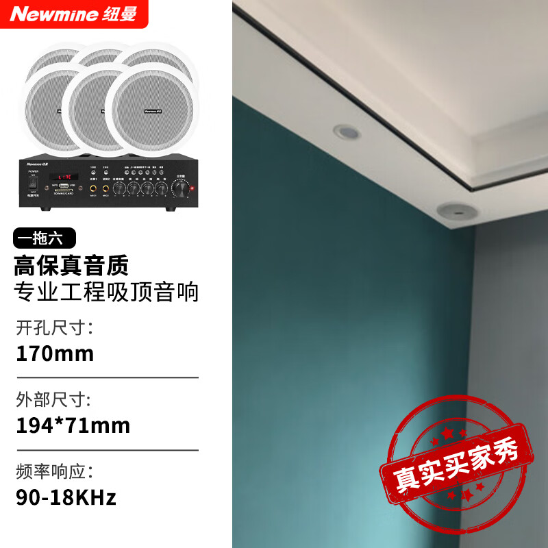 纽曼(Newmine)R16 定压吸顶喇叭音响套装 吊顶背景音乐公共广播功放音箱系统(6英寸 一拖六)价格:539.00元!