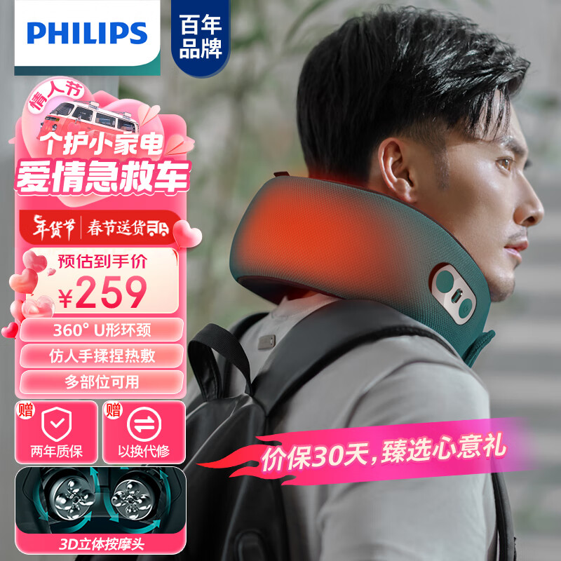 飞利浦(PHILIPS)颈椎按摩器 肩颈部按摩仪 颈椎脖子护颈仪 肩颈脉冲送男女礼物3103N价格:289.00元!