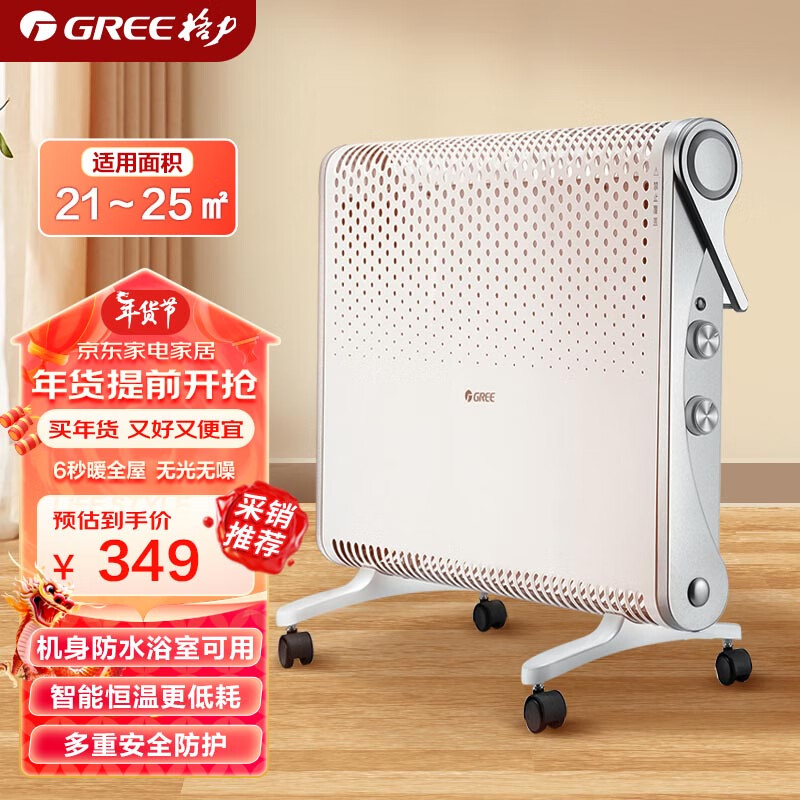 格力(GREE)【居浴两用】取暖器家用电暖气家用欧式快热炉电暖气浴室防水电暖气干衣无光轻音取暖气 NBDC-22价格:319.00元!