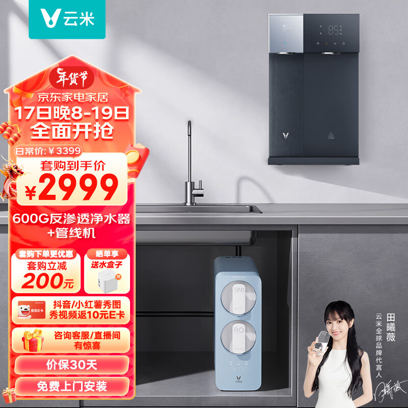 云米(VIOMI)小蓝调600G全屋净水套装净水器+冷热管线机Master 3两件套家用直饮加热即热净水器净水机价格:3399.00元!