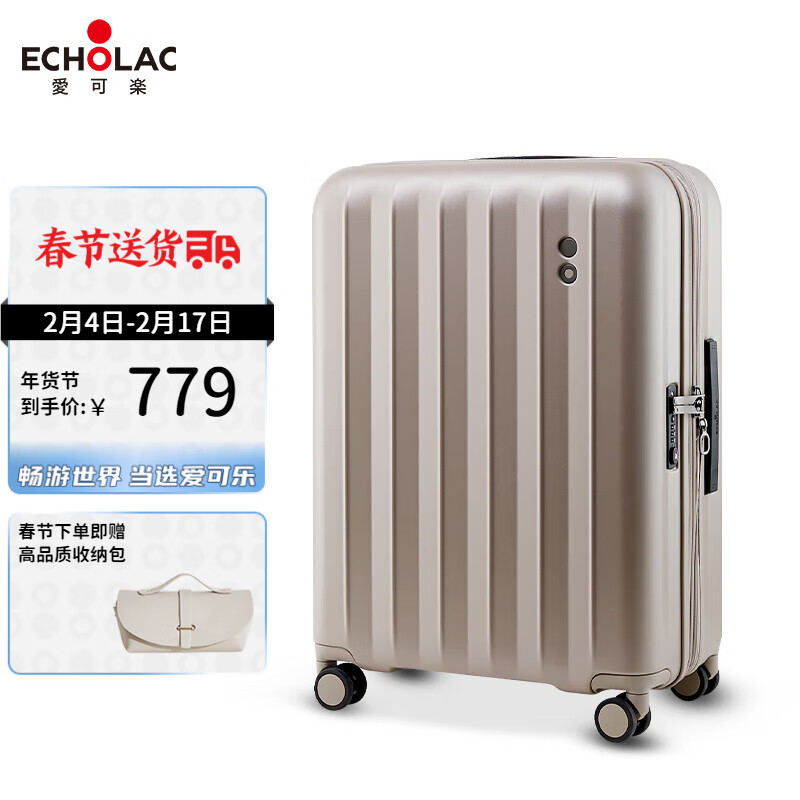 爱可乐(Echolac)万向轮行李箱大容量旅行箱防刮密码箱旅游托运箱PC232拿铁棕28吋价格:899.00元!
