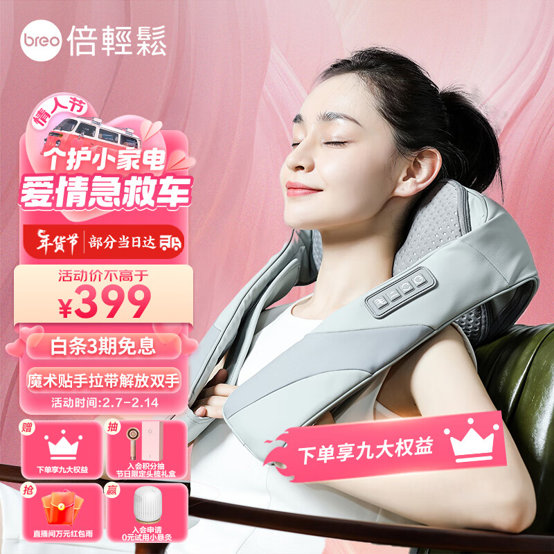 倍轻松(breo)颈椎按摩器sk-012解放双手肩颈按摩披肩腰部背部按摩仪热敷揉捏斜方肌 情人节礼物 易烊千玺代言价格:459.00元!